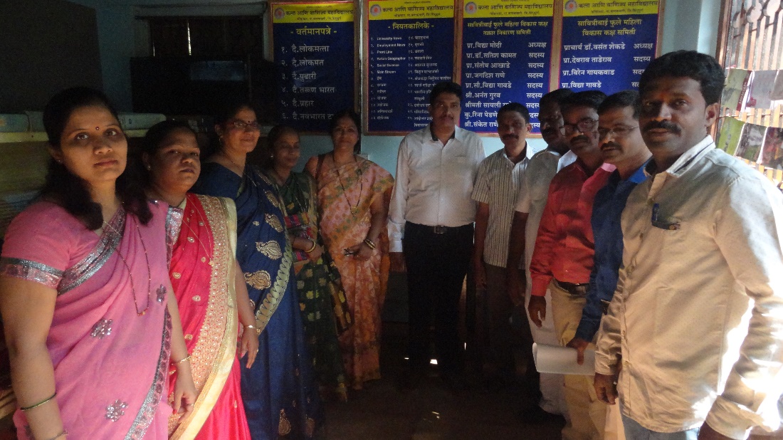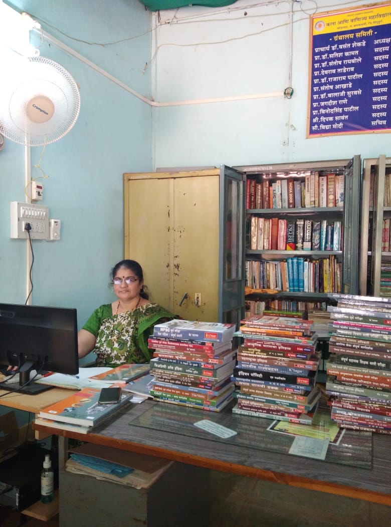 Arts and Commerce College established 11 September 1995. At that time library has started. Library is well-equipped with a variety of books.Presently the library has more than 10000 text books, reference books and other books in general, more than 1700Text books under the Book Bank Scheme, 15 periodicals on various subjects, 364 E-books, 15 CDs and DVDs, 08 daily newspapers of state and national level in Marathi, Hindi and Englishetc.
